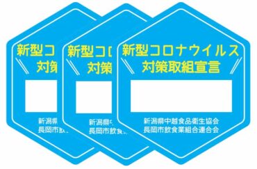 新潟県中越食品衛生協会と長岡市飲食業組合連合会が、市内の 飲食店 /食品販売店 /ホテル /旅館等に、感染防止対策チェックリストを配布 →8月上旬、リストに基づいて感染防止を徹底した店舗に、対策取組宣言ステッカー(タイトル画像)を配布 →ステッカーを目印に、コロナ対策万全のお店を探そう!