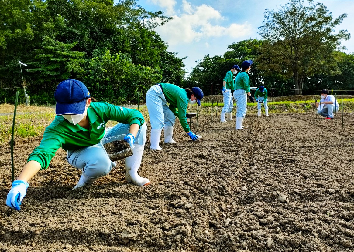 タイトル画像: 農業高校生の肥料散布と種まき作業