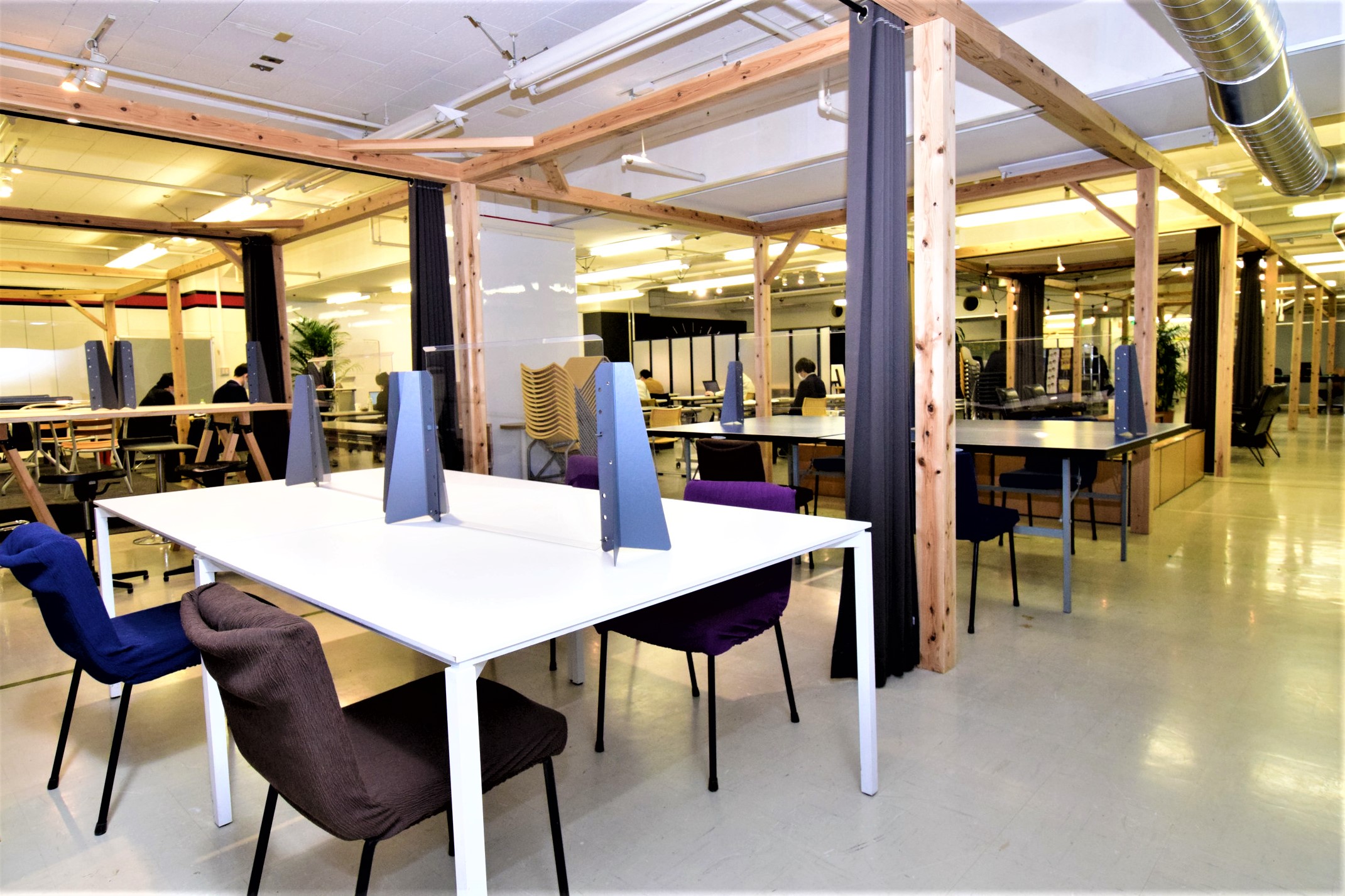ここには、入居事業所の関係者が利用できるコワーキングスペースが整備されているので来客も含めさまざまな企業人が自然に触発しあう交流コミュニティが生まれる場となるだろう。