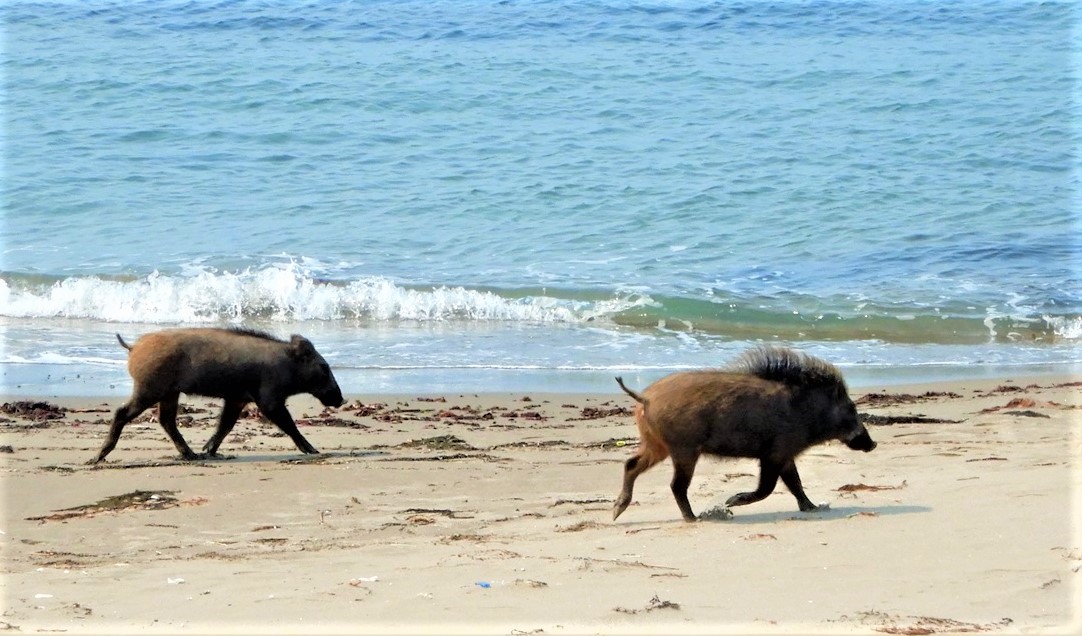 寺泊地域の海岸に出没したイノシシ(捕獲済み、2020年4月)