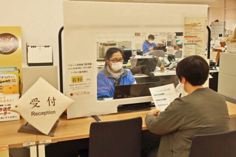 タイトル画像: アオーレの利用相談を受けるNPO法人ながおか未来創造ネットワークのスタッフ