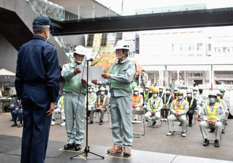 タイトル画像: 10月29日(木) 長岡市除雪出動式 除雪業者38名が出席。代表者が今冬の無事故・無災害、きめ細かい除雪への決意を力強く表明した。