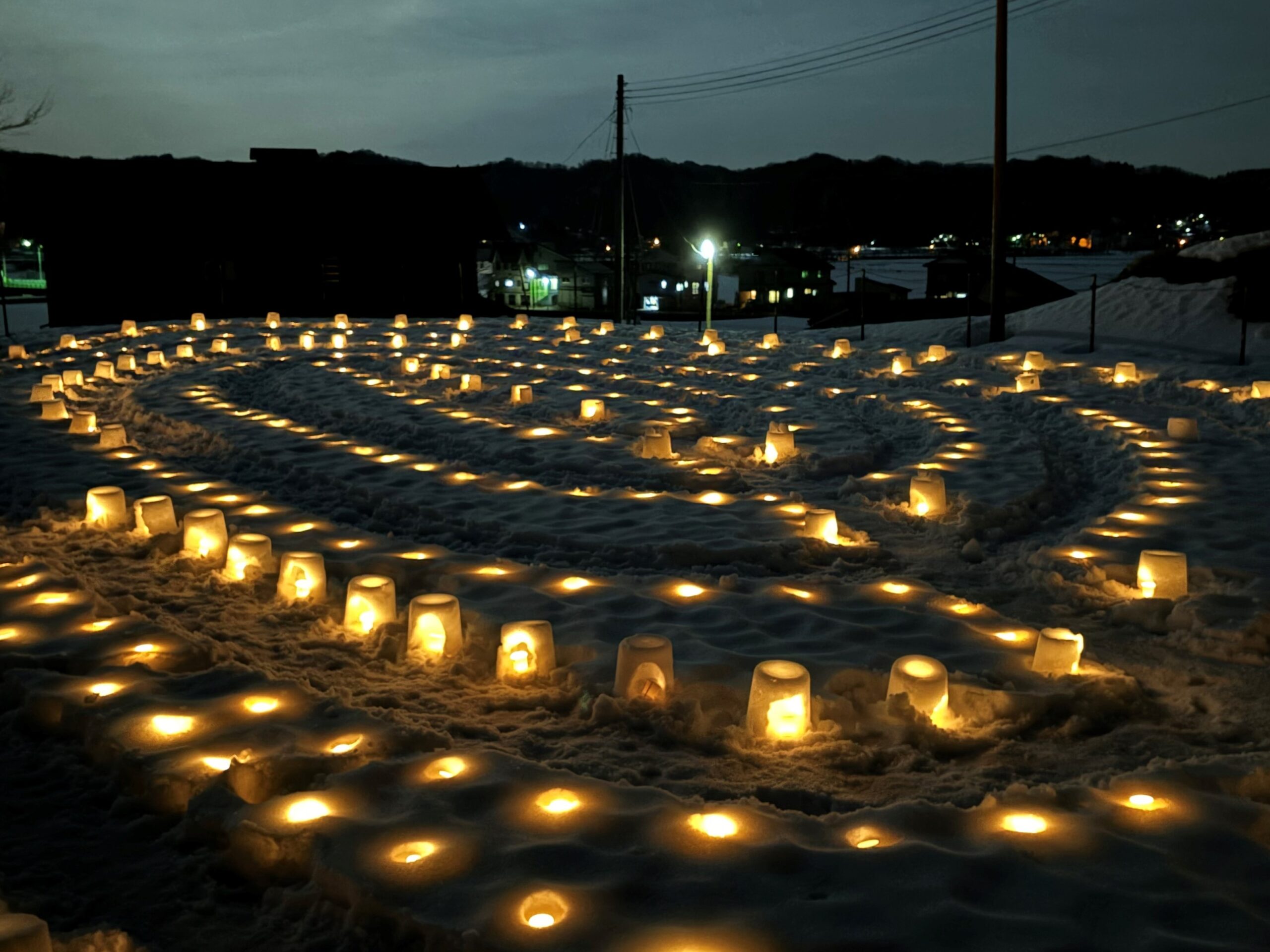 おぐに雪まつり 地域内の各所で灯る「雪ぼたる」